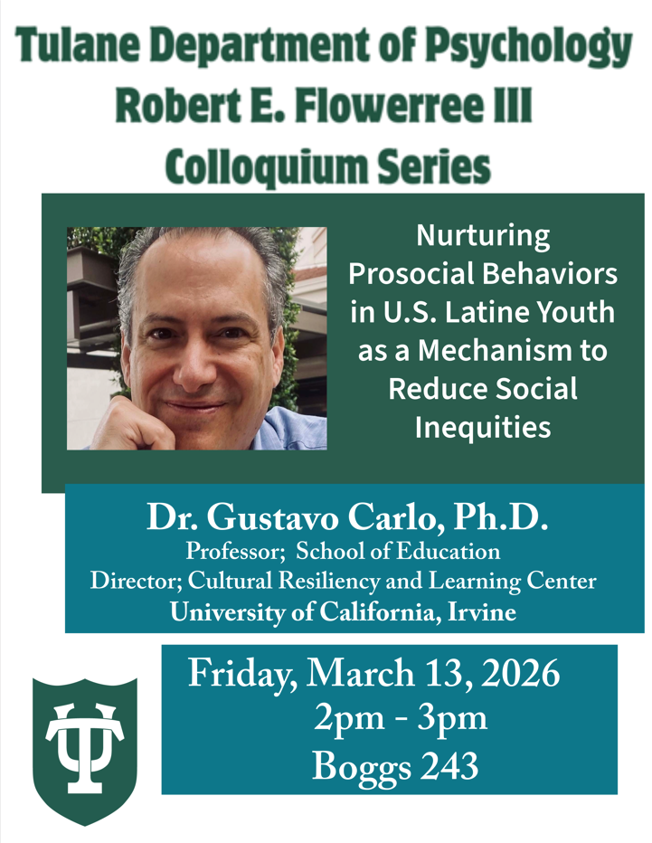03/12/26 - Dr. Zeytinoglu hosted Dr. Gustavo Carlo, who is a Professor at UC Irvine, at Tulane. Dr. Carlo gave a talk titled, “Nurturing Prosocial Behaviors in U.S. Latine Youth as a Mechanism to Reduce Social Inequities.